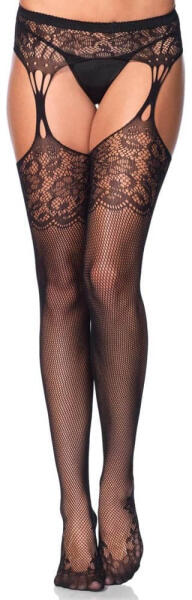Tear drop garterbelt stockings black O/S