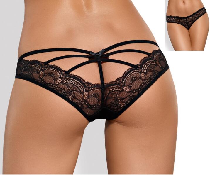 Az ANAIS gyönyörű Tess női bugyija érdekes szabású. Áttetsző anyaggal, néhány rafinált pánttal és kapoccsal, valamint hátul nyitott dizájnnal készült, így teljesen feltárja a popsi könyékét. Ne bízzon semmit a véletlenre! A popsira egy édes masni hívja fel a figyelmet.