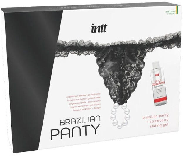 A brazil bugyi egy finom csipke fehérnemű, egyedi gyöngysorral, amely feldobja és stimulálja az intim pillanatokat. A csomag tartalmaz egy 50 ml-es eperillatú vízbázisú síkosítót is.