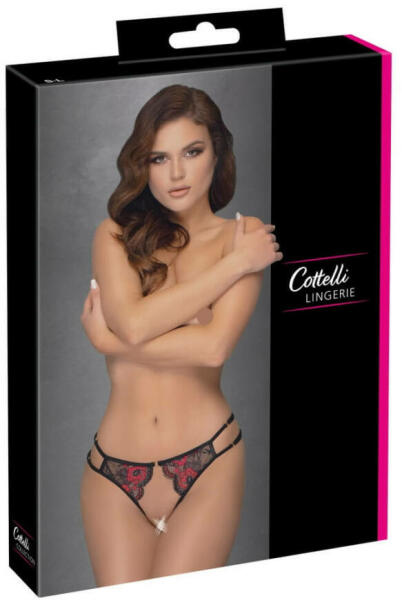 Cottelli - rózsás, csipkés, nyitott női alsó (piros-fekete) Puha, 2 különböző színű csipkéből Állítható pántokkal mindkét oldalon - saját kényelmedre igazíthatod Szeméremnél és popsinál is teljesen nyitott - aktus közben is viselhető, igazi randi bugyi Anyaga: 90% Polyamid, 10% Elasthan Szín: piros-fekete Méret: egyenméret (S, M és L méretre egyaránt passzol) Erre