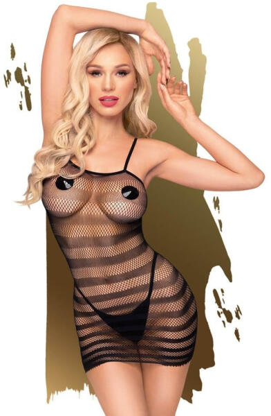 Szexi, két részes ruha, ami a legkívánatosabb helyekre vonzza a tekintetet - a melleket és a popsit finoman takarja, miközben mégis láttatja azt... csak úgy vonzza az éhes tekintetet! Miért jó? Nagyon rugalmas - több méretre is passzol Nagy szemű, lyukacsos háló - betekintést enged a mögötte levő testre A hálón levél motívummal - extra díszítés a melleken Két részes -