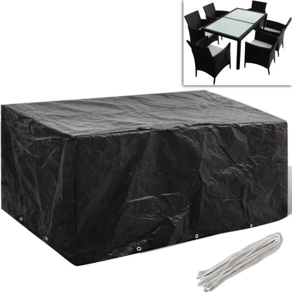 Ez a kiváló minőségű kerti bútorhuzat egész évben védi rattan garnitúráját a szennyeződéstől, széltől, esőtől és UV-fénytől. A huzat strapabíró polietilénből készült, amely vízálló, UV-álló, szakadásálló így pedig alkalmas a mindennapi használatra. 10 alumínium fűzőlyukkal és rögzítőkötéllel rendelkezik, így jobban illeszkedik a garnitúrájához. A