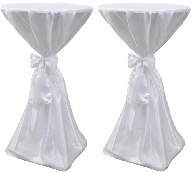 Ez az asztal borító alkalmas kerek bárasztalokhoz, ideális választás szépíteni esküvőket, partikat és banketteket. A fedél kötött egy mellékelt szalaggal, és egy csokor van rajta, hogy ez sokkal elegánsabb legyen. A burkolat klasszikus szatén anyagból készűlt, amely könnyen tisztitható. A szállítás tartalmaz 2 db asztalterítőt.