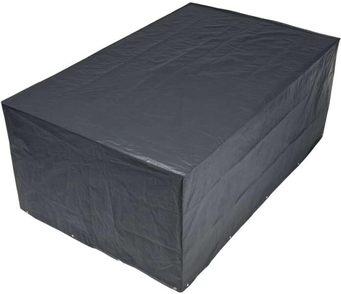 Ez a kiváló minőségű PE huzat alkalmas arra, hogy egész évben megvédje kerti bútorgarnitúráját a szennyeződéstől, széltől, esőtől és UV fénytől. Tökéletesen kompatibilis a kültéri étkezőgarnitúránkkal is (sku 44056). A huzat strapabíró polietilénből készült, amely vízálló, UV-álló, kopásálló. 8 alumínium fűzőlyukkal és egy rögzítőkötéllel rendel