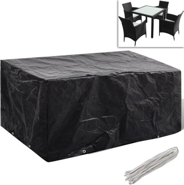 Ez a kiváló minőségű kerti bútorhuzat egész évben védi rattan garnitúráját a szennyeződéstől, széltől, esőtől és UV-fénytől. A huzat strapabíró polietilénből készült, amely vízálló, UV-álló, szakadásálló így pedig alkalmas a mindennapi használatra. 8 alumínium fűzőlyukkal és rögzítőkötéllel rendelkezik, így jobban illeszkedik a garnitúrájához. A h