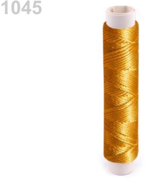 Valódi selyemcérna gomblyukak kézi varrására és hímzéshez. A selyem erőssége a gyártó szerint ph 2,33tex x 16x3, végső finomság 94tex. Tekercs: 10 m Vastagság: kb. 0,5 mm összetétel 100% selyem