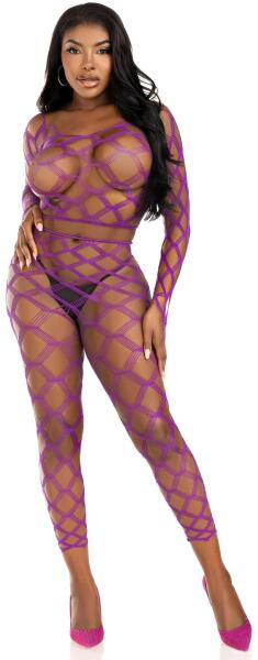 Pörgesd fel az impulzusokat ebben az ultra dögös, 2 részes hálós crop felsőben és leggingsben, a Leg Avenue szettben. Az állkapcsos, hosszú ujjú crop top és a láb nélküli harisnya egy geometrikus hálót tartalmaz, amely elfordítja a fejeket. Merész és sokoldalú, ez a szexi nemű megjelenés biztosan felforrósítja a hálószobát, vagy kacér fürdőruha takaróként a medence