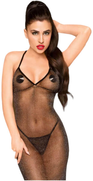 A fekete, fényes Wetlook overall különleges erotikus ruhadarab, amely izgalmas beillesztésekkel és merész dizájnnal készült. Miért jó? Erőteljes és szexi dizájn: A fényes Wetlook anyag és a szellős hálós betétek tökéletes kombinációja, amely garantálja a figyelemfelkeltést. Merész cipzárak: A mellbimbóknál és az ágyéknál található rejtett cipzárak izgalmas és