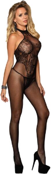 Impozáns, áttetsző, rugalmas, nagyon aprószemű neccből készülő cicaruha. Virágmintás felsőrésszel, vékony vállpántokkal, kerek nyakkal, zárt lábfejrésszel. A dekoltázsnál és a csípő két oldalán, hullámmintás-lyukacsos szegélyekkel. A combok felső vonalánál rácsos, lyukacsos szegéllyel. Szeméremnél teljesen nyitott, aktus közben is viselhető kialakítással. An