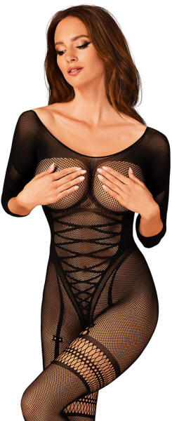 Obsessive G329 testharisnya (fekete) Többféle mintázattal kombinált, alapvetően puha, vastagabb, aprószemű necc anyagból készült, áttetsző testharisnya. Méret: XL-XXL egyenméret Rendkívül puha és rugalmas Anyaga: 90% nylon, 10% elasztán Nagyon tetszetős csomagolás Prémium minőség