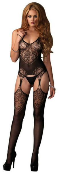 Úgy simul a testre, akár egy második bőr! Ördögien szexi szett, mely minden fantáziát megmozgat! Egyedi szövésű, varrásmentes (extra kényelmes), szexi lyukacsos anyagból készült spagettipántos, a csípőnél magasan szabott body, 1pár hozzá illő combfix-szel, mely szilikonmegerősítéssel készült, hogy biztosan a helyén maradjon. Anyaga: 90% Polyamid, 10% Elasthan. Mérete: