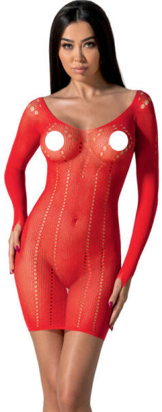 Miniruha stílusú, rugalmas anyagból készült, hosszú ujjú cicaruha. Az áttetsző anyagon apró ovális kivágások futnak végig, a hátrésze nyitott. Az ujja végénél egy hüvelykujjas bújtató található, meggátolván a felcsúszását. Javasoljuk megtekintésre a fentebb található termékbemutató videót. Méret: S-L egyenméret A termék egy méretben kapható, a további képe