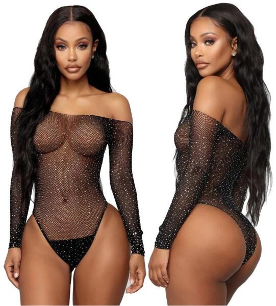 Sonja strasszos necc body. Rugalmas anyagból strasszkövekkel díszítve. Méret:S-L-ig mindenkire jó.