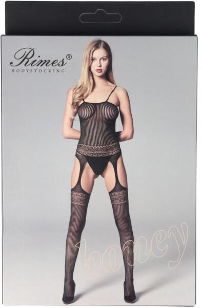 Rimes sűrűn mintázott, az intim részénél nyitott cicaruha (Model 7128) Nagyon rugalmas, sűrű mintázatú anyagból készült, "harisnyatartós" jellegű cicaruha. Alul a harisnyarész csupán két pánttal kapcsolódik fel a felsőre, így ott szinte teljes egészében nyitott. Kedvező ára miatt -ami nem tükrözi a termék minőségét, tehát jobban kapunk mint gondolnánk- amiatt sem