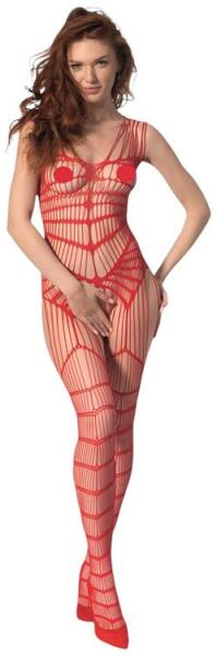An absolutely eye-catching crochet net lingerie piece from Rene Rofe, this full bodystocking will captivate your playmate with its snug, slimming fit and strategic openings. Your curves will be the star of this number, the low cut neckline accents your best points and an open crotch and backside offer up effortless accessibility. One size. 85% Nylon, 15% Spandex. Hand wash cold. * G-string sold se
