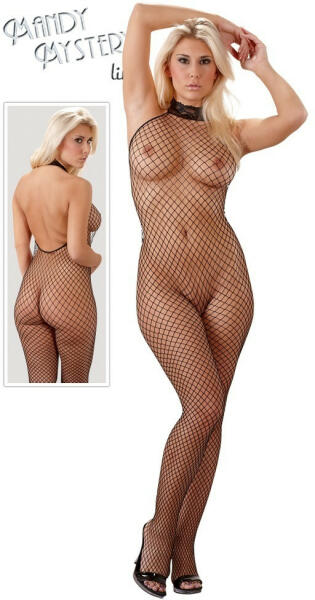 Mandy Mystery nyitott testharisnya, apró neccből A melleknél és a comboknál nyitott cicaruha, aprószemű, rugalmas necc anyagból. Méret: S-L Anyaga: 100% polyamid