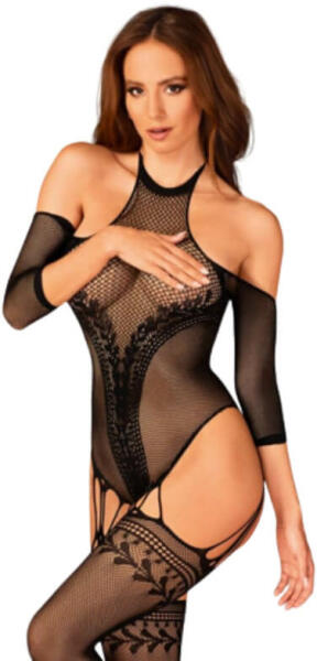 NO:XQSE - Indás-virágos nyakpántos, necc body - fekete (S-L)