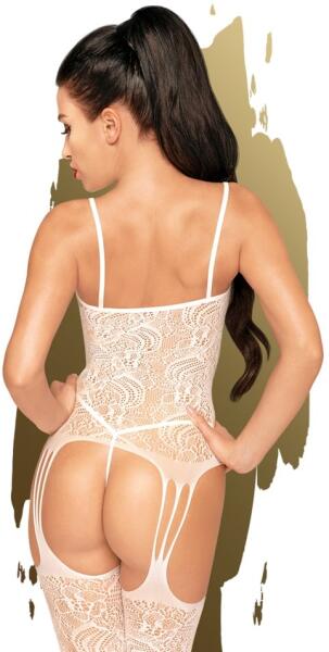Obsessive F217 testharisnya Prémium minőségű, alul nagy mértékben nyitott, harisnyatartós fazonú testharisnya, virágmintás motívumokkal gazdagon díszítve. Méret: S-L egyenméret Alul és oldalt nyitott Rendkívül puha és rugalmas Anyaga: 90% nylon, 10% elasztán Nagyon tetszetős csomagolás Prémium minőség