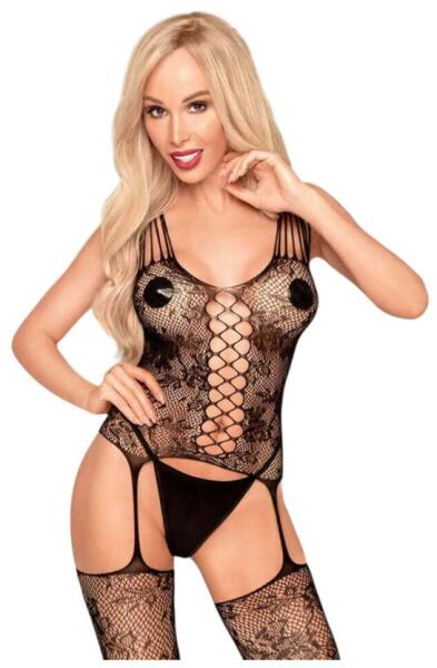 Különleges mintákkal és pikáns kivágásokkal készülő harisnyatartós felső, egybefűzve csipkehatású, necc harisnyával (nem levehető). Miért jó? Prémium Brand Nagyon rugalmas, sűrű szövésű és mintás, lyukacsos anyag - több méretre is passzol Harisnyatartós felső egybefűzve necc harisnyával (nem levehető, több pánttal is kapcsolódik) Zárt, megerősített lábfejr