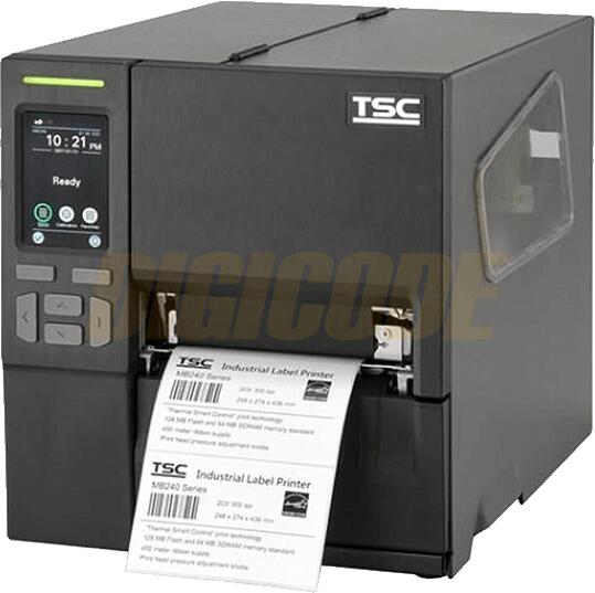 TSC MB240T címkenyomtató, termál transzfer, 8 dots/mm (203 dpi), max címke szélesség: 120 mm, max nyomtatási szélesség: 108 mm, max tekercs átmérő: 203mm, max nyomtatási sebesség: 203 mm/s, USB, RS232, Ethernet, Wi-Fi (802.11a/b/g/n), EPL, ZPL, ZPLII, DPL, RAM: 64 MB, Flash: 128 MB, kijelző (érintőkijelző), real time clock, Black Mark Sensor, Gap Sensor, csomagban: tápegység, t