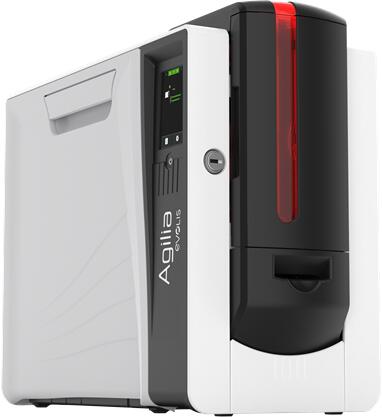 card printer, single sided card printing, thermal transfer (dye sublimation, 4-colour, monochrome), 12 dots/mm (300 dpi), speed (max. ): 700 cards/hour, USB, Ethernet (10/100 Mbit), card feeding (max. 100 cards), LCD Display, contactless station, incl. : cable (USB), power cable (EU, UK)