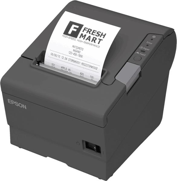 receipt printer, direct thermal, 7 dots/mm (180 dpi), media width (max. ): 58 mm, 80 mm, print width (max. ): 72 mm, 300 mm/s, USB, Ethernet, ESC/POS, incl. : cable cover, paper width adapter, switch cover, order separately: power supply unit, power cable, dark grey