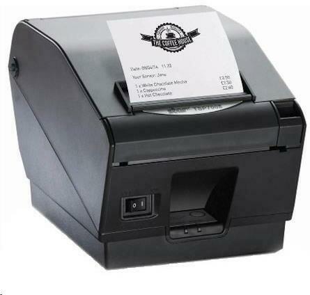 receipt printer, direct thermal, resolution: 8 dots/mm (203 dpi), variable paper width (58/82.5/80mm), print width (max. ): 80 mm, 250 mm/s, Ethernet, incl. : cutter, ESC/POS, Star, order separately: power supply unit, dark grey