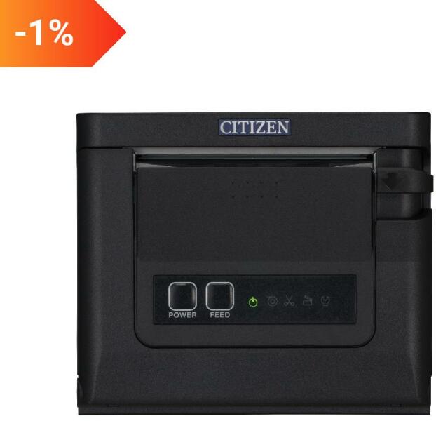 receipt printer, direct thermal, 8 dots/mm (203 dpi), media width (max. ): variable paper width (58/80 mm), print width (max. ): 72 mm, 350 mm/s, USB, cutter, ESC/POS, incl. : power supply unit, receipt roll, QSG, order separately: interface cable, colour: black