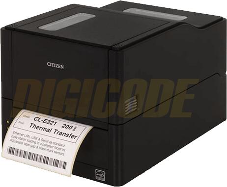 Citizen CL-E331 címke nyomtató, thermal transfer, 12 dots/mm (300 dpi), vágó, max címke szélesség: 118 mm, max nyomtatási szélesség: 108 mm, max tekercs átmérő: 127mm, max sebesség: 200 mm/s, multi-interface (RS232, USB, Ethernet), emuláció: ZPLII, Datamax, szín: fekete, csomagban: tápegység, tápkábel, külön kell rendelni: interfész kábel