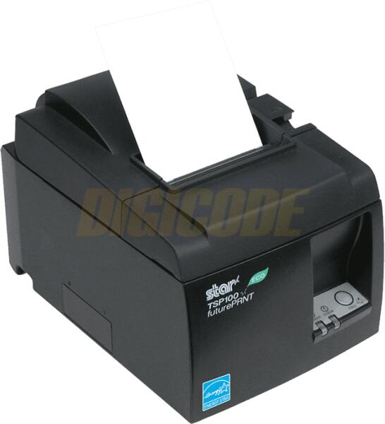 Star TSP100 blokk nyomtató, direct thermal, 8 dots/mm (203 dpi), változtatható papír szélesség (58/80 mm), max nyomtatási szélesség: 72 mm, max nyomtatási sebesség: 200 mm/s, USB, címkevágó, ESC/POS, Star, csomagban: kábel (USB), tápkábel (UK), wall keret, dark szürke