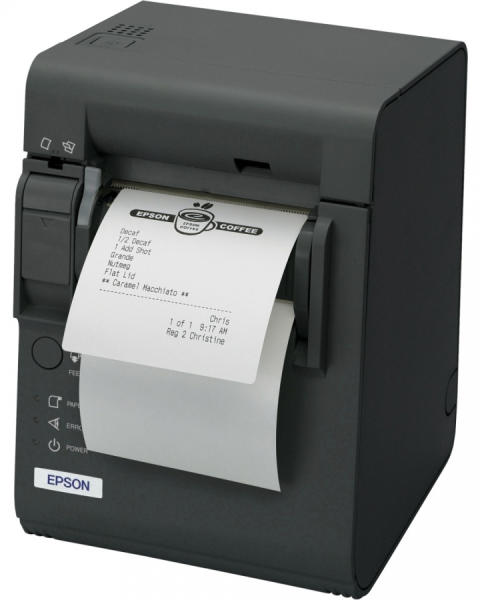 Epson TM-L90 védőfólia-mentes címke nyomtató. Normál és öntapadós hátoldalú papírral egyaránt használható Mivel a TM-L90 védőfólia-mentes nyomtató normál hőpapírral és NCR RoL védőfólia-mentes címkepapírral is használható, a felhasználóknak egyetlen szürkeárnyalatos készülék is elegendő a címkenyomtatáshoz és a rendelések felcímkézéséhez. A korszerű g