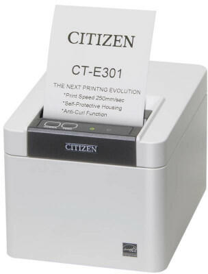 receipt printer, direct thermal, 8 dots/mm (203 dpi), media width (max. ): 80 mm, print width (max. ): 72 mm, roll diameter (max. ): 83mm, speed (max. ): 250 mm/s, USB (type B), drawer kickout, cutter, desinfectable housing, Flash: 8 MB, incl. : power supply: (power supply unit, power cable), QSG, colour: white