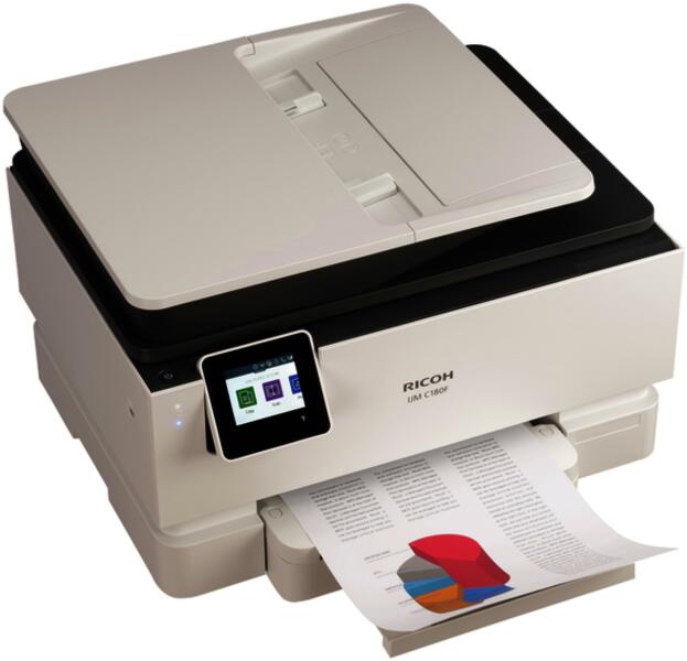 A RICOH IJM C180F színes multifunkciós nyomtatóval nem kell kompromisszumot kötnie a technológia terén, amikor otthonról dolgozik. Ugyanolyan minőségű A4-es nyomtatásra számíthat, mintha az irodában lenne – anélkül, hogy sok helyet foglalna. Csendes és kényelmes. Érintőképernyős vezérlésével az egyszerű használhatóság átfogó funkcionalitással párosul - mindez úg