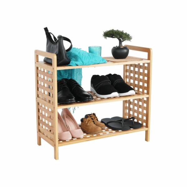 Előszoba bútor > Cipőtárolók > Cipősszekrény, festett bambusz, SOVETO TYP 2 Cipősszekrény SOVETO TYP 2 Anyag: lakkozott bambusz Szín: természetes bambusz Méretek (SzéxMéxMa): 69x27,5x55 cm 3 polcos Szállítás szétszerelve.