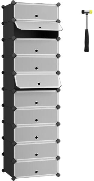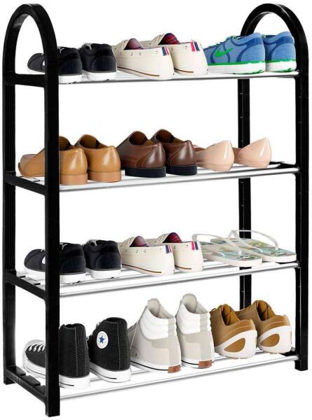 A négy polcos, fekete színű cipőtartó lehetővé teszi a ruhatár vagy az előszobában tárolandó cipők megfelelő elrendezését. Viszonylag kis helyen tárolhatja a cipőket, ruhákat. A polc stabil szerkezete a legjobb minőségű anyagokból készült, aminek köszönhetően sokáig fog szolgálni. A négy polcos, fekete színű cipőtartó lehetővé teszi a ruhatár vagy az előszob