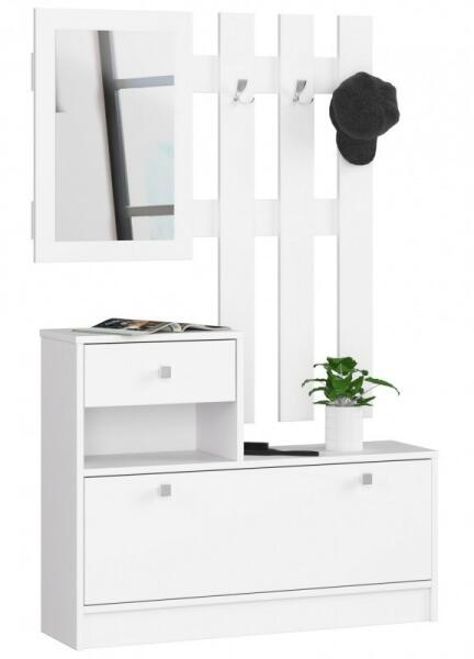 ELŐSZOBA BÚTOR SZETT CIPŐSSZEKRÉNNYEL, TÜKÖRREL ÉS FOGASSAL Méretek: Hosszúság - 90cm Magasság - 70/170cm Mélység - 25cm Ízléses előszoba bútor szettet keres? Szeretné, hogy a kis tér jól ki legyen használva? Ha a válasz igen, akkor jó helyen jár. Az előszobai bútorok fogassal és cipősszekrénnyel elengedhetetlenek minden lakásban vagy házban. A fehér előszoba szett