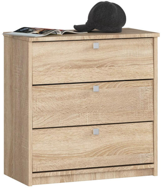 Praktikus és helytakarékos cipősszekrény 3 billenő ajtóval, amely tökéletes megoldást nyújt akár 9 pár cipő tárolására. A Sonoma tölgy kivitel és a kopásálló laminált felület modern és tartós bútordarabbá teszi. Kompakt és stílusos tárolási megoldás előszobájábaEz a modern cipősszekrény tökéletes egyensúlyt teremt a funkcionalitás és az esztétika között