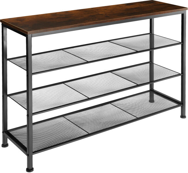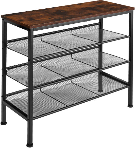 A trendi Portsmouth tectake cipőtartó tipikus rusztikus ipari stílusban minden bejárati helyen kiemelkedik. Az elegáns fa megjelenésű felső polc helyet biztosít a mindennapi dolgoknak, például kulcsoknak, pénztárcának és mobiltelefonnak. A tornacipők, a magas sarkú cipők, a szandálok stb. mindig rendezettek és kézre állnak a három szorosan hálózott rácsszinten. Az állít