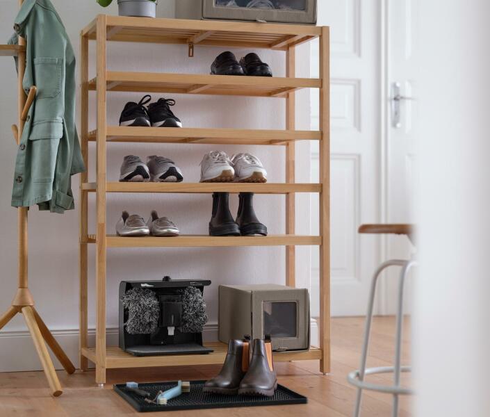 Ez a szép cipőtartó robusztus akác-keményfából készült, sok tárolóhellyel a cipők számára, mely tökéletes otthonod bejáratának rendben tartásához! Mérete miatt ideális a folyosóhoz vagy a bejárathoz. A masszív faszerkezet gyorsan összeszerelhető, 3 szint sok helyet és rendet biztosít. Masszív fa szerkezet Erős akác keményfából készült 3 erős polccal A keresztr