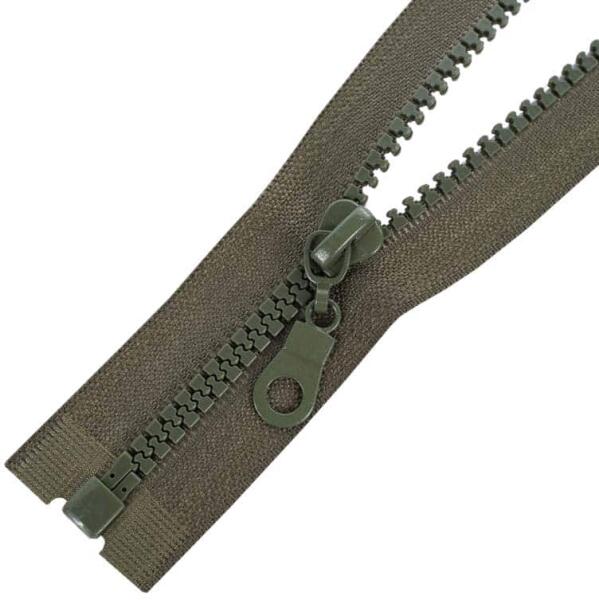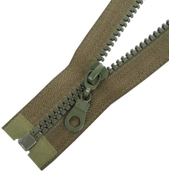 Öntött műanyag fogazattal rendelkező bontható (nyitható) cipzár. Ezt a típusú cipzárt hívják cápafogú, farkas fogú cipzárnak is. A fogazat szélessége 5 mm, a cipzárszalag teljes szélessége 3,2 cm. A fogazat színe megegyezik a textilszalag színével, a cipzárkocsi kör formájú (M4). A cipzár színét egy színkód jelzi, ezért könnyen választhatsz ugyanolyan színű eg