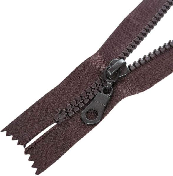 Öntött műanyag fogazattal rendelkező nem bontható (zárt) cipzár. Ezt a típusú cipzárt hívják cápafogú, farkas fogú cipzárnak is. A fogazat szélessége 5 mm, a cipzárszalag teljes szélessége 3,5 cm. A fogazat színe megegyezik a textilszalag színével, a cipzárkocsi kör formájú (M9). A cipzár hossza: 30 cm. A cipzárszalag színét egy színkód jelzi, így könnyen válas
