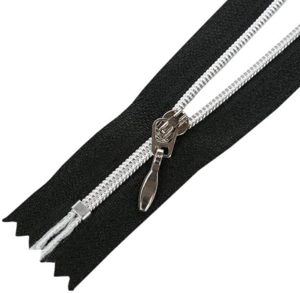 Nagyon esztétikus, ezüst színű műanyag spirállal rendelkező cipzár. A spirál 3 mm széles, a hordozószalag teljes szélessége 2,5 cm. Attraktív cipzár, így a legnagyobb esztétikai elvárásoknak is megfelel. A cipzárszalag színe fekete (332). Zárt kivitel, tehát nem bontható a cipzár alsó része. Alkalmazható például pulóver, dzseki, kabát, blézer készítésénél. Nag