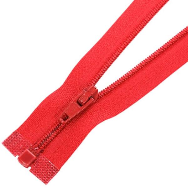 Öntött műanyag fogazattal rendelkező bontható (nyitható) cipzár. Ezt a típusú cipzárt hívják cápafogú, farkas fogú cipzárnak is. A fogazat szélessége 5 mm, a cipzárszalag teljes szélessége 3,2 cm. A fogazat színe megegyezik a textilszalag színével, a cipzárkocsi kör formájú (M4). A cipzár hossza: 65 cm A cipzárszalag színét egy színkód jelzi, így könnyen válasz