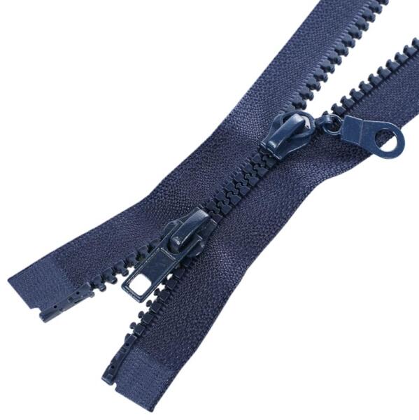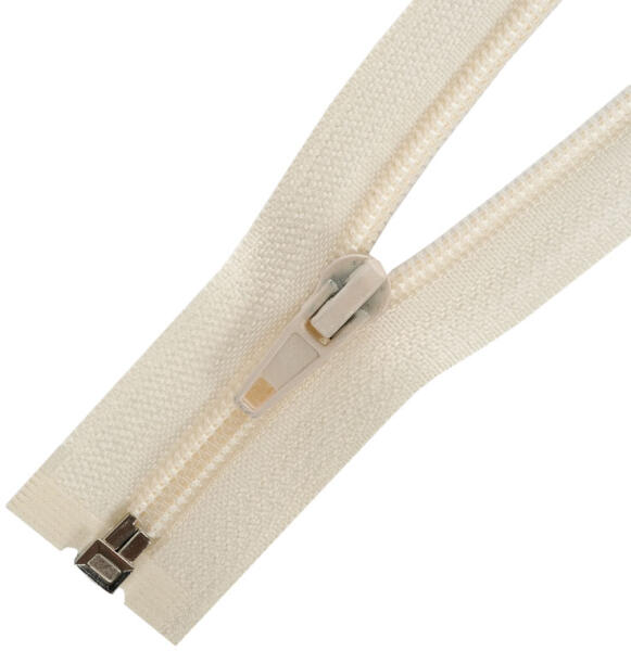 Öntött műanyag fogazattal rendelkező bontható (nyitható) cipzár. Ezt a típusú cipzárt hívják cápafogú, farkas fogú cipzárnak is. A fogazat szélessége 5 mm, a cipzárszalag teljes szélessége 3,2 cm. A fogazat színe megegyezik a textilszalag színével, a cipzárkocsi kör formájú (M4). A cipzár hossza: 75 cm A cipzárszalag színét egy színkód jelzi, így könnyen válasz
