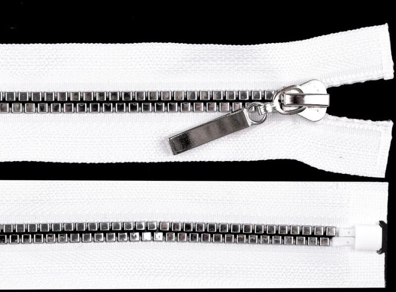 Fém hatású, műanyag, szögletes fogú, bontható cipzár, cipzár kocsival. Alkalmas kabátok, mellények vagy rövidebb kabátok varrására. A fogak ezüst színűek A fogszélesség: 5 mm A cipzár teljes szélessége 3,5 cm Hossz: 80 cm Autlock Bontható Az ár 1db cipzárra értendő.