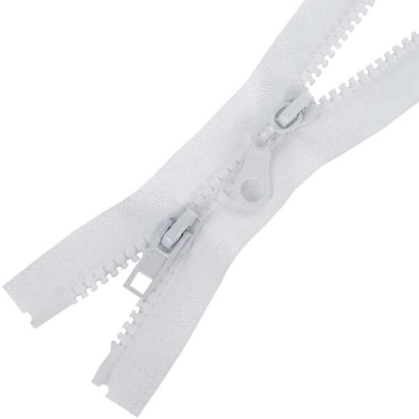Műanyag, ezüst fogú, átlátszó, bontható cipzár, dupla cipzár kocsival. A 2 csúszkával ellátott cipzár előnye, hogy mindkét oldalról nyitható. Alkalmas kabátok, mellények vagy rövidebb kabátok varrására. A fogak ezüst színűek A fogszélesség: 5 mm A cipzár teljes szélessége 3,5 cm Hossz: 50 cm Autlock Bontható Az ár 1db cipzárra értendő.
