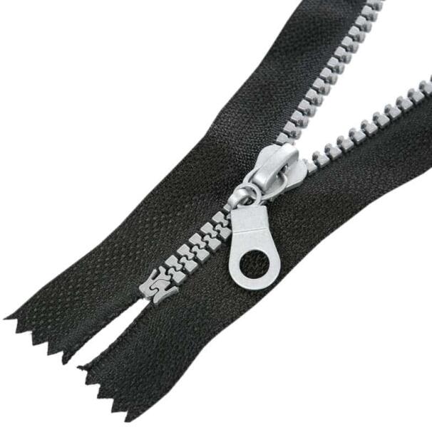 Öntött műanyag fogazattal rendelkező nem bontható (zárt) cipzár. Ezt a típusú cipzárt hívják cápafogú, farkas fogú cipzárnak is. A fogazat szélessége 5 mm, a cipzárszalag teljes szélessége 3,5 cm. A fogazat ezüstszürke, a cipzárkocsi kör formájú (M6). A textilszalag színe fekete (332). A cipzárszalag színét egy színkód jelzi, így könnyen választhat ugyanolyan sz
