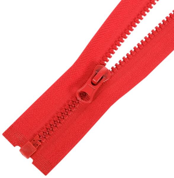 Öntött műanyag fogazattal rendelkező bontható (nyitható) cipzár. Ezt a típusú cipzárt hívják cápafogú, farkas fogú cipzárnak is. A fogazat szélessége 5 mm, a cipzárszalag teljes szélessége 3,2 cm. A fogazat színe megegyezik a textilszalag színével, a cipzárkocsi kör formájú (M4). A cipzár hossza: 50 cm A cipzárszalag színét egy színkód jelzi, így könnyen válasz