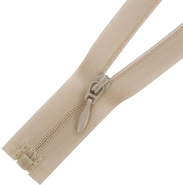 Öntött műanyag fogazattal rendelkező bontható (nyitható) cipzár. Ezt a típusú cipzárt hívják cápafogú, farkas fogú cipzárnak is. A fogazat szélessége 5 mm, a cipzárszalag teljes szélessége 3,2 cm. A fogazat színe megegyezik a textilszalag színével, a cipzárkocsi kör formájú (M4). A cipzárhossza: 60 cm A cipzárszalag színét egy színkód jelzi, így könnyen választ