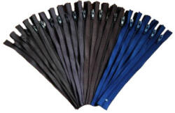 RT0 - 18 cm - es műanyag nem bontható, spirál fogú cipzár - húzózár csomag - Barna és Kék Szett. Különböző Barna és Kék színek vegyesen egy csomagban. Csomagban 20 db különböző színű / 18 cm hosszú, fém kocsis cipzárt található. Hossza : 18 cm Cipzár szélessége : 3 mm A cipzár végzáróval van ellátva ebből adódóan nem nyitható. Kellően strapabíró, táskák